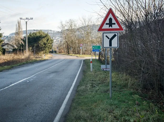 - Попереджувальні: попереджають про небезпечне місце і вимагають підвищеної обережності. Зазвичай ставляться заздалегідь: поза населеним пунктом 100–250 м, у населеному пункті 50–100 м. Якщо стандартну відстань витримати неможливо — додають табличку з реальною відстанню.